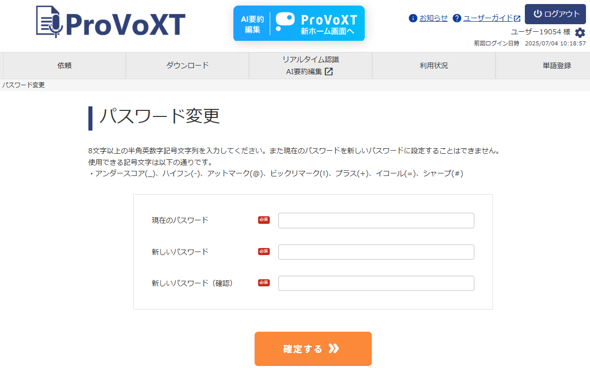 ・パスワードに使用できる文字は半角英数字、アンダースコア(_)、ハイフン(-)、アットマーク(@)、