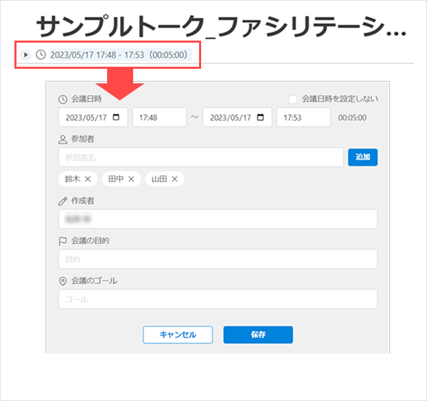 - 画面右上の「×」ボタンを押して、議事録エディタ画面に戻る