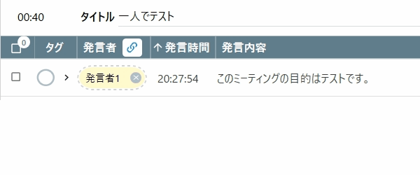 「このミーティングの目的はテストです。」