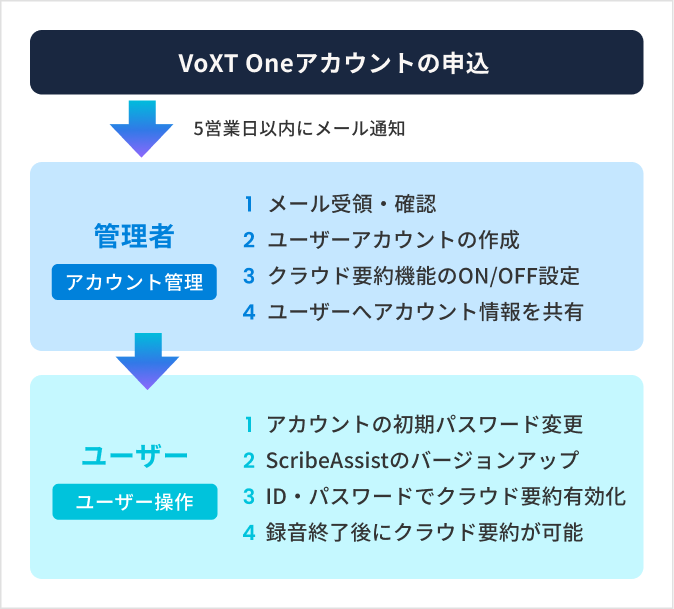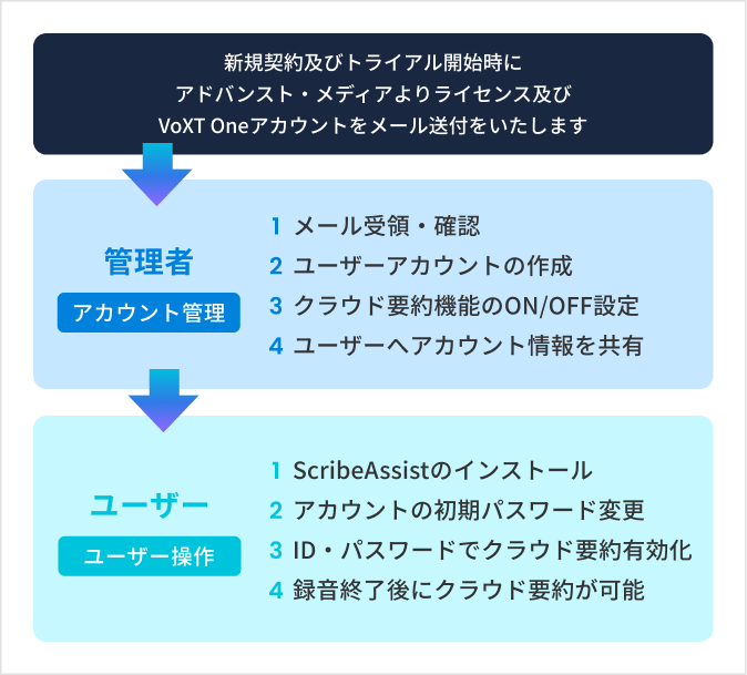 VoXT Oneアカウントは、ScribeAssistライセンスご契約および更新時にご案内している場合がございます。