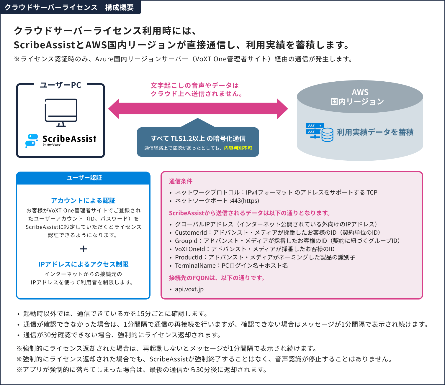 ※強制的にライセンス返却された場合でも、ScribeAssistが強制終了することはなく、音声認識が停止することはありません。