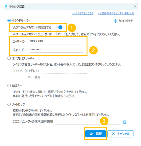STEP3 VoXT Oneアカウントにてライセンス認証