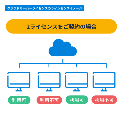 ※クラウドサーバーライセンスでは、ご契約のライセンス数を超過していないか確認するため、起動時および一定期間にネットワーク通信によるライセンス認証確認を行っております。