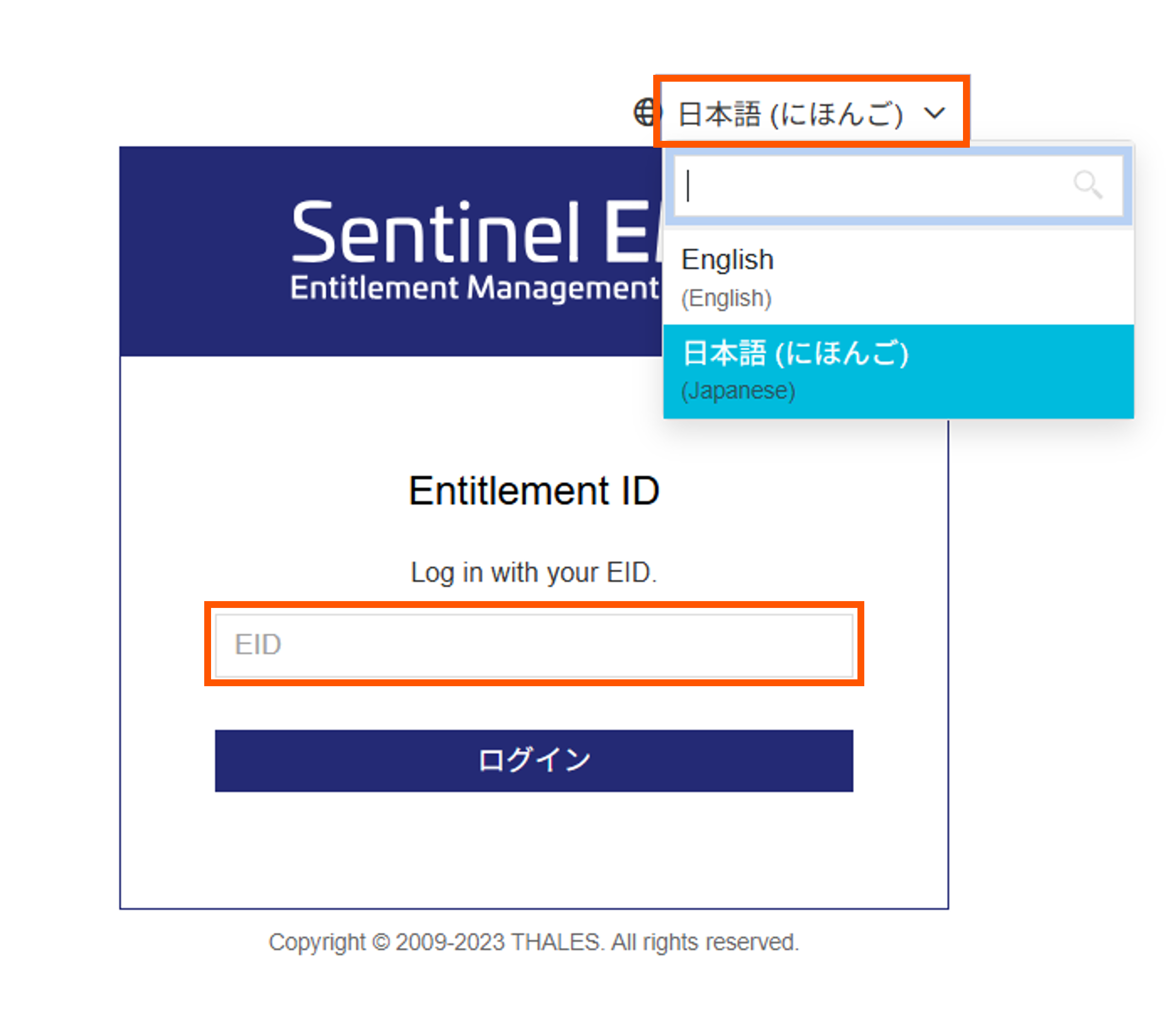ボタンがEIDに選択されているかを確認した上で、EIDを入力し、[ログイン]をクリックします。