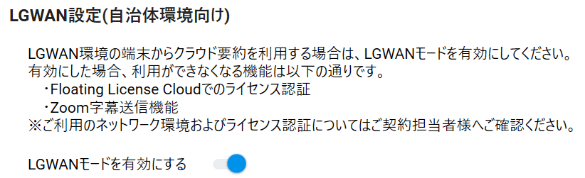 [LGWANモードを有効にする]をオンにしてください。