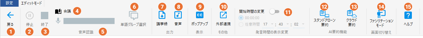⑭ファシリテーションモードファシリテーションモードへ切り替えます。