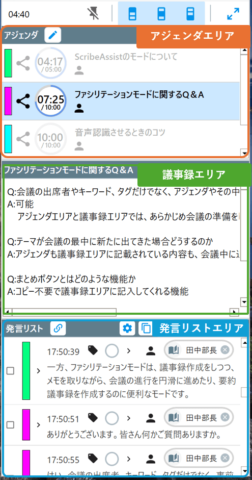 ファシリテーションモードをコンパクトに表示させることで、資料などと一緒にScribeAssistを画面共有することができます。